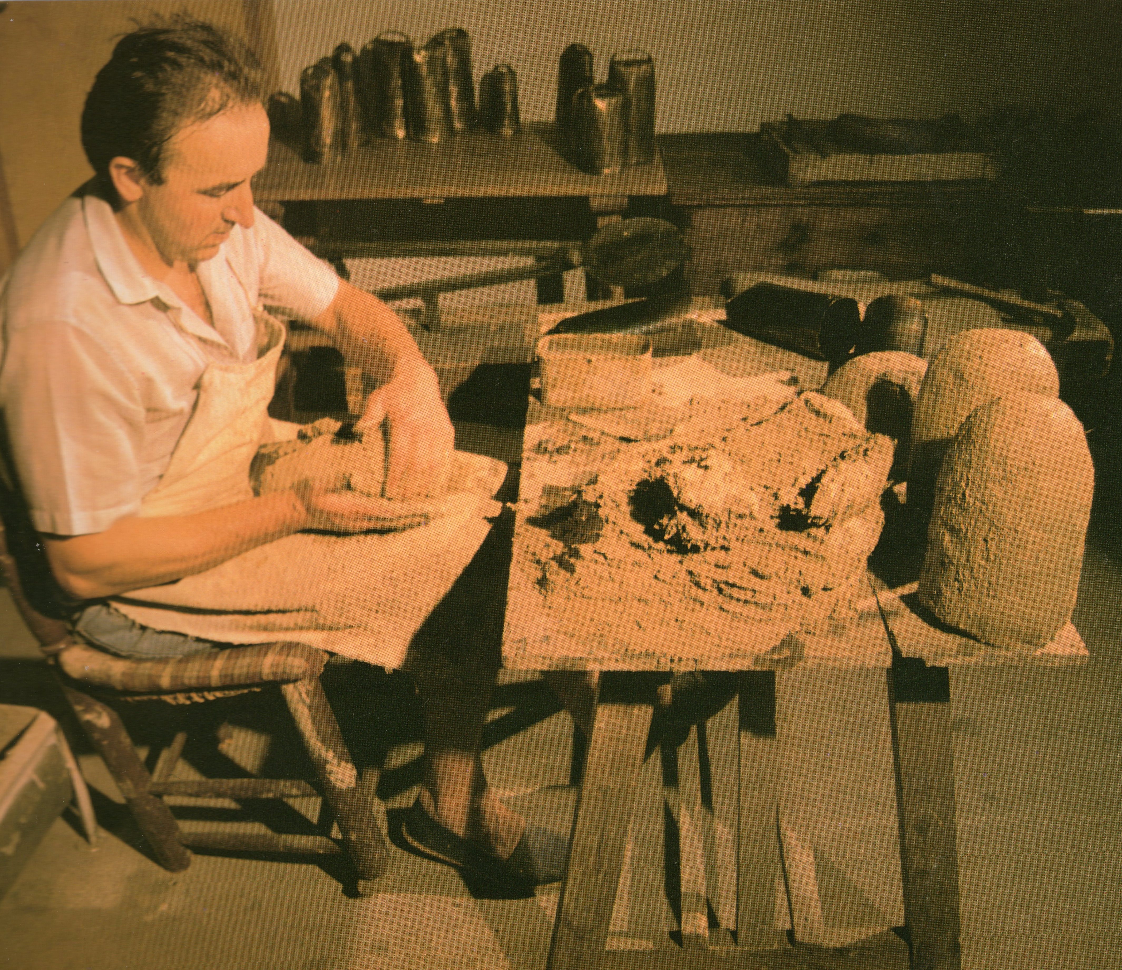 Para envolver las esquilas separa un montón de barro de la gamella encima de la mesa. Para cada pieza, con sus manos, hace una torta cuyo grueso depende de la medida de la esquila – las más grandes tienen 1 cm –, y distribuye por ella las piezas de latón que tenía reservada y pesadas. Con la torta envuelve la esquila exteriormente, quedando en contacto las piezas de latón con el hierro, dejando la boca sin tapar hasta que se haya secado el barro.