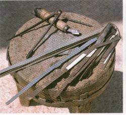 En función de su tamaño, cada modelo de esquila necesita un determinado peso de metal para la cocción. Grifos rotos, casquillos de bala y todo tipo de objetos de bronce o latón, serán guardados por el esquilero en trozos pequeños para su aprovechamiento.